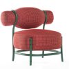 Materials: Bentwood lounge chair. Solid beechwood frame lacquered black or white. Upholstered seat with woven cane back.